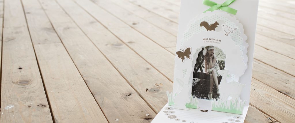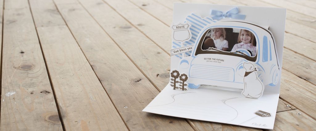 「Pict In(ピクトイン)」は手元にあるプリント写真を差し込んで、そのまま立てて飾れるメッセージカードです。