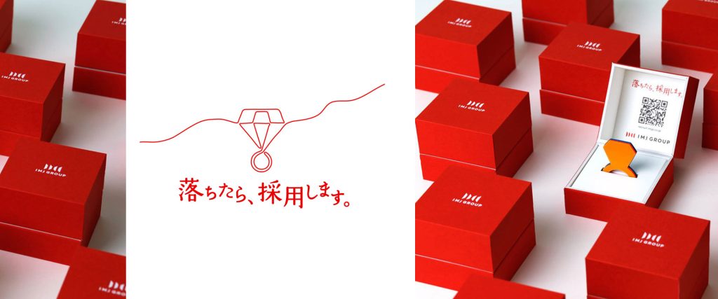 指輪型付箋「RING-IT」が、株式会社アイ・エム・ジェイ様の2016年度採用活動「落ちたら、採用します」のノベルティーとして使用されました。